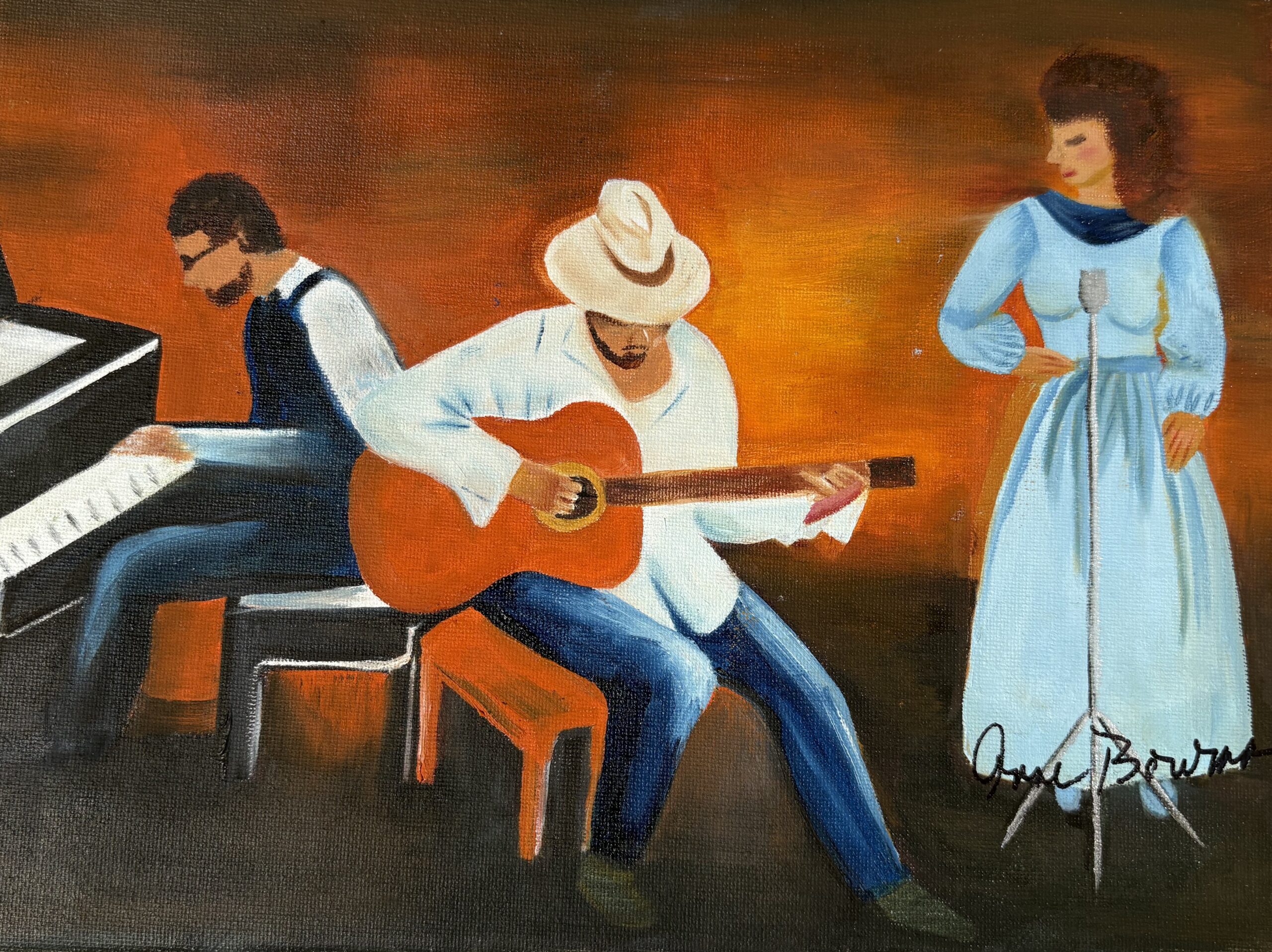 The vibrant oil painting from Anne Bowman, capturing the spirit of those soulful nights of music in “Latin Jazz”, measuring at 12″ x 9″ the painting features three musicians, each absorbed in the music and adding their unique energy to the performance.